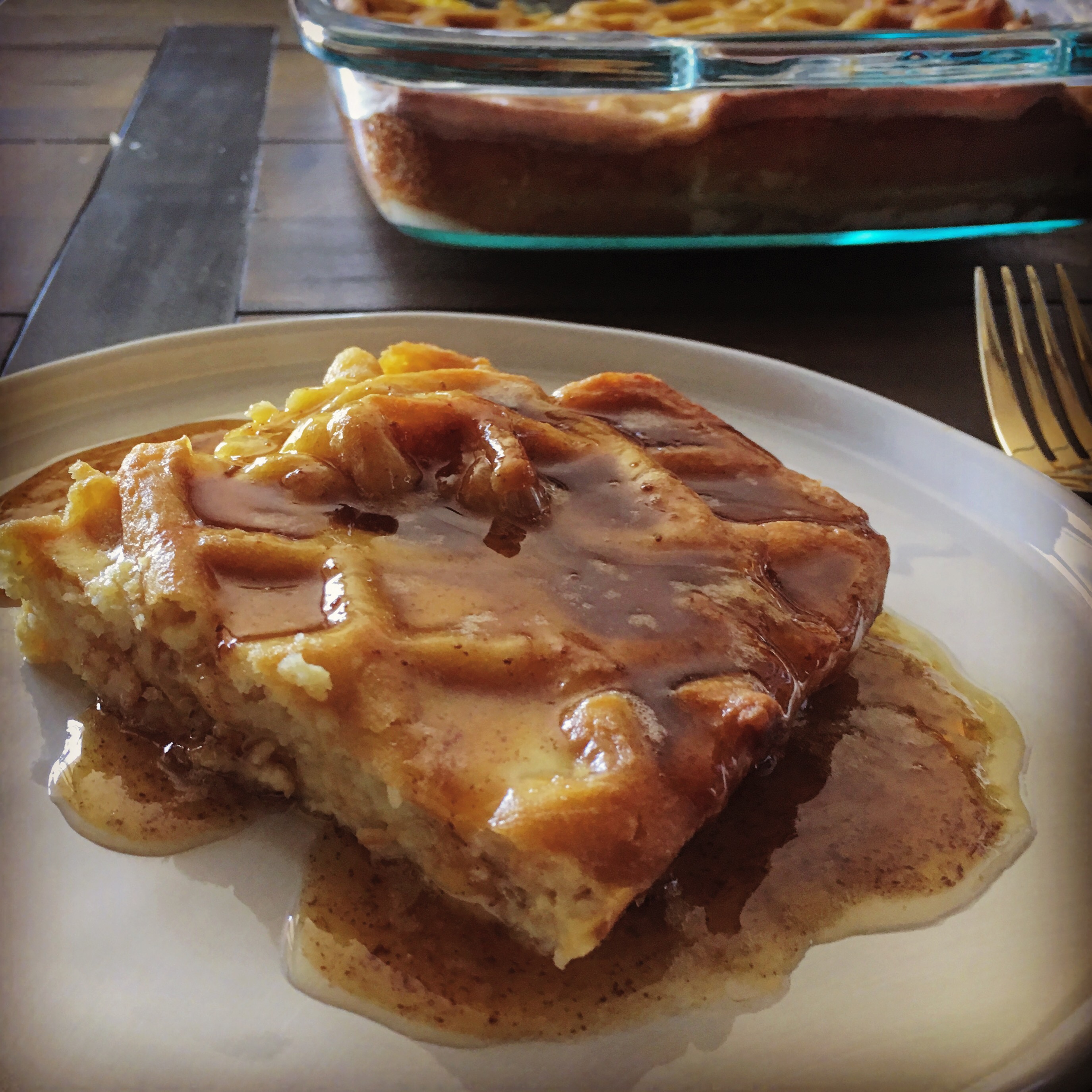 My adaptation is below. It occurred to me that this dish might work better if you used a recipe where you soaked the waffles in the custard mixture overnight. So I changed the recipe from what I’d originally made in 2010.