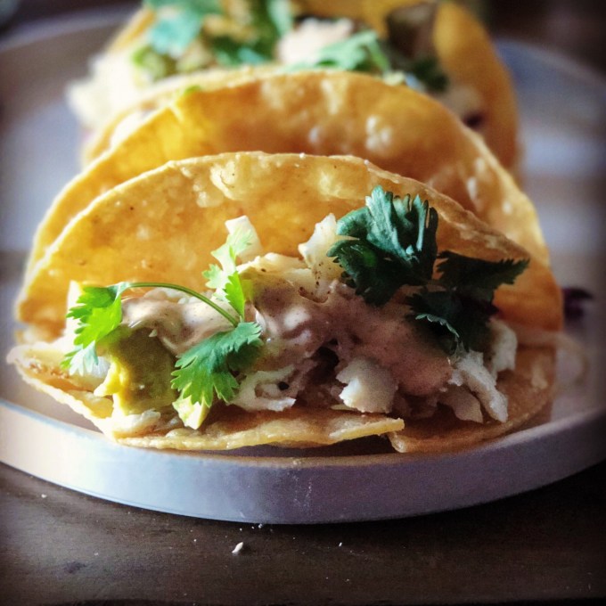 The only way to improve these tacos would be to make the fish fresh instead of using leftover and possibly using a homemade salsa (I didn’t much care for the Tostitos brand salsa we had in the fridge.) Despite those minor complaints, the tacos were delicious! The hand-made hard shell tortillas made the dish.