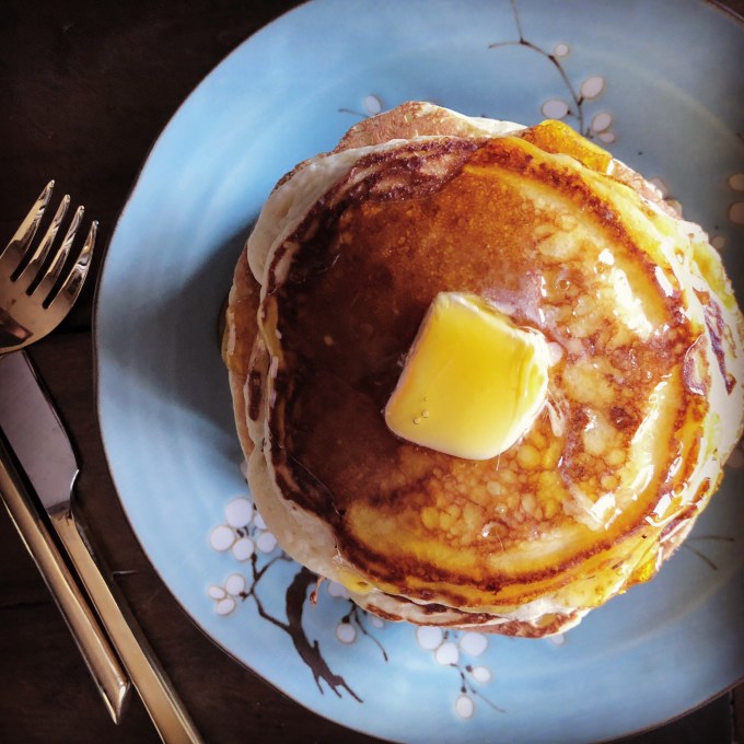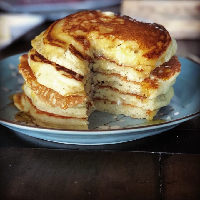 One of the first recipes I ever made as a child was buttermilk pancakes. Buttermilk pancakes were something my mom made often for breakfast on the weekends (along with waffles and French toast) and eventually when I was old enough I took over making pancakes. (Especially during summer break when my mom was at work and unable to make breakfast during the week.) Because of my pancake-filled childhood, to this day I’m a sucker for a good pancake. Without my mother’s recipe on hand this morning, I searched the internet for a suitable pancake recipe. The below recipe was adapted from Martha Stewart’s recipe.
