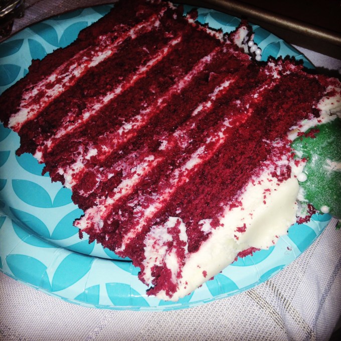 It’s my birthday week, Day 5, AKA my actual birthday. Every year on my birthday, I must have red velvet cake. It’s a tradition that goes back many, many years. I made a six-layer eight-inch round cake and brought most of it to work this morning. Most people get in around 6 am. The cake was 95% gone by 7 am. There were many disappointed folk. I guess next year I’ll have to make several cakes.