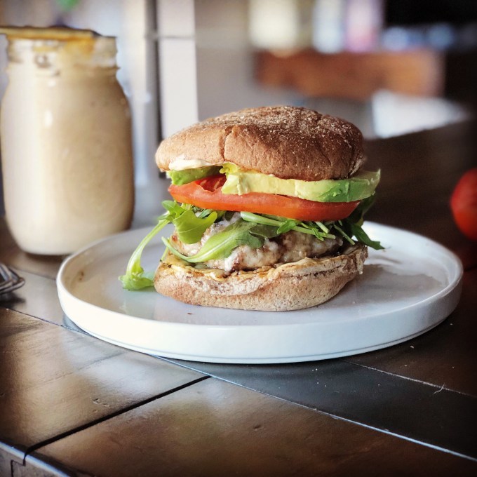 I stacked my patty with a few thin slices of white cheddar cheese and slices of avocado. It was a whole new take on our usual turkey burger patties.