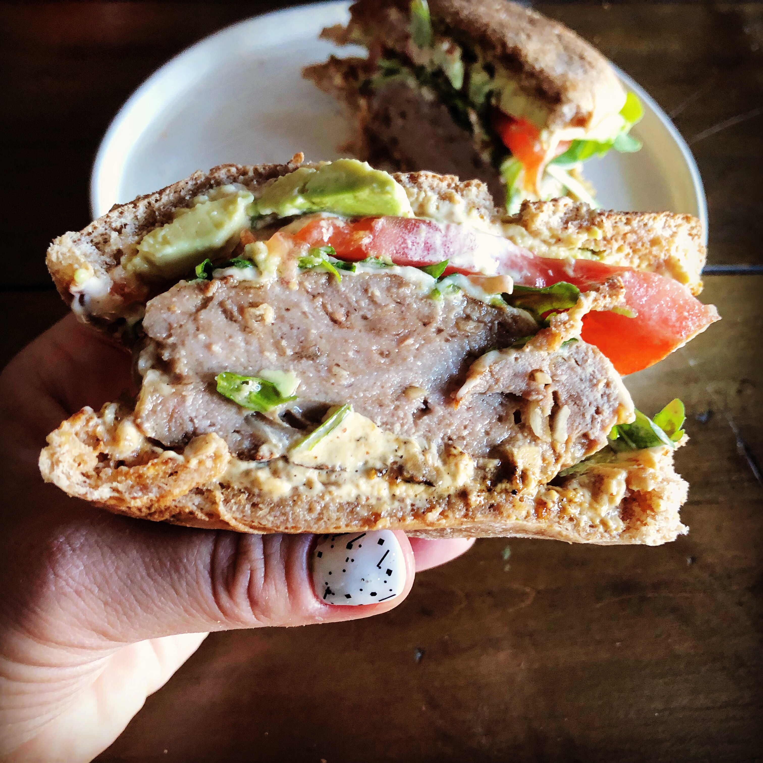 Before we even moved to Arizona, I found Kraft Sandwich Shop Mayo on sale at Vonn’s one day. I needed to have mayo in our cupboards when we arrived in Arizona! I couldn’t resist trying the Hot & Spicy variety. It’s a good alternative when you don’t have any homemade spicy mayo in the fridge. I slathered spicy mayo on my toasted thin bun; BF slathered his usual — yellow mustard.