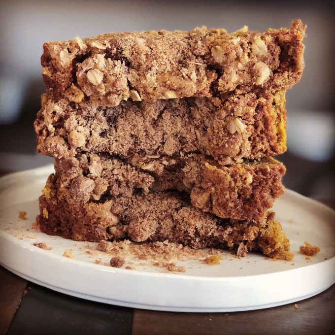 I thought this was a strange combo when my sister told me what she made, but the crumble topping looked too good to pass up, and it was. The bread in and of itself is delicious but the topping takes the cake. (Takes the bread?)