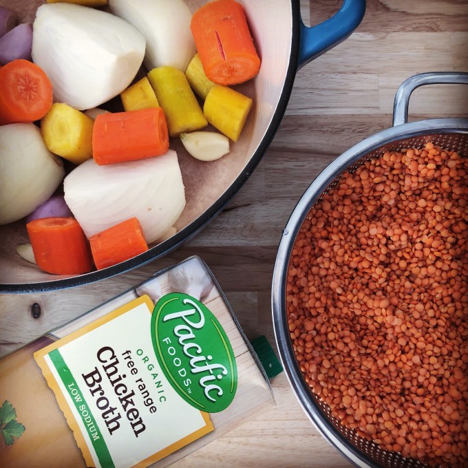 One of my avid readers (perhaps the only avid reader of my blog besides my dad — who is really only considered an avid reader because I signed him up for an email subscription of my newly posted blogs thus forcing him to become an avid reader) recently suggested more soup recipes. If there are any other (silent) avid readers out there wondering what’s with all the soup recipes recently, that’s why. Specifically she asked for a lentil soup recipe. I’m guessing this is because lentils are healthy, full of fiber, and cheap (especially when buying in bulk).