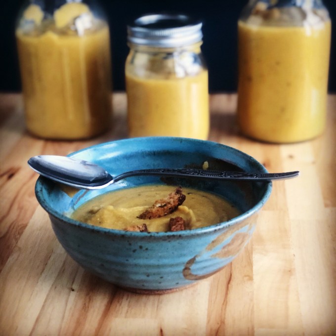 - Remove the bay leaves. Puree the mixture in a blender or food processor in batches. Transfer to a new pot while you’re pureeing. Add half & half, salt and pepper, and oregano.