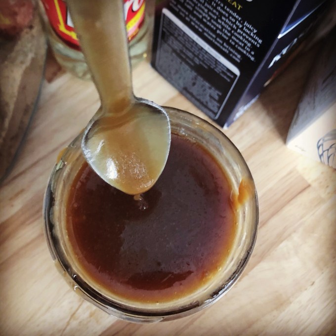 *The sauce will still appear thin but thicken as it cools. If you pour this into a container and have more than two cups of sauce you haven’t cooked it long enough and it won’t thicken a ton during the cooling process. This should yield just less than 2 cups of caramel sauce.
