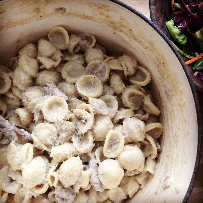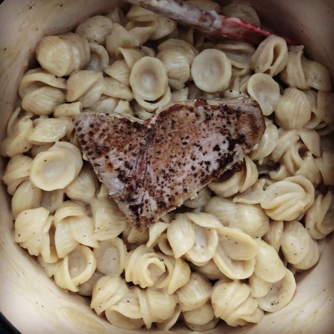 If you’re someone who likes to add tuna to Mac and cheese you will like this dish. It’s basically a grown up Mac and cheese that uses expensive fresh tuna (or salmon) and alcohol.
