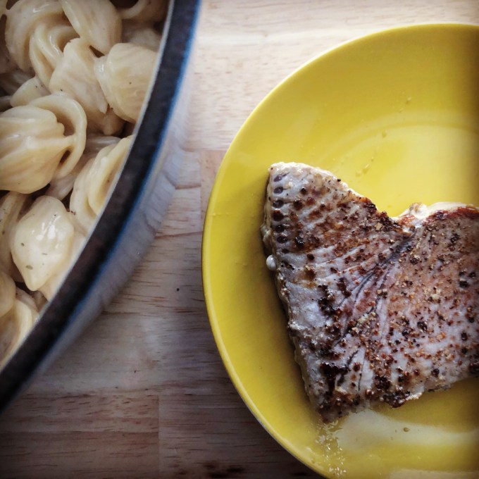 I liked this dish because it was relatively simple. I like making any sauce that’s cream or that you have to reduce. And I could eat salmon every day of the week and not get sick of it.