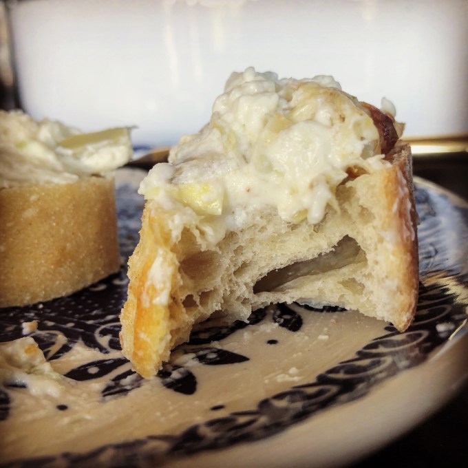 This recipe, found on JSOnline, tastes exactly like The Chancery’s artichoke dip. It was a huge hit at our Portlandia party tonight. I served the dip with pastry puff, but The Chancery serves theirs with Herb Boule bread (which is quite fantastic). Incidentally, the dip also tastes great spread on a cheeseburger topped with bacon. Yum!