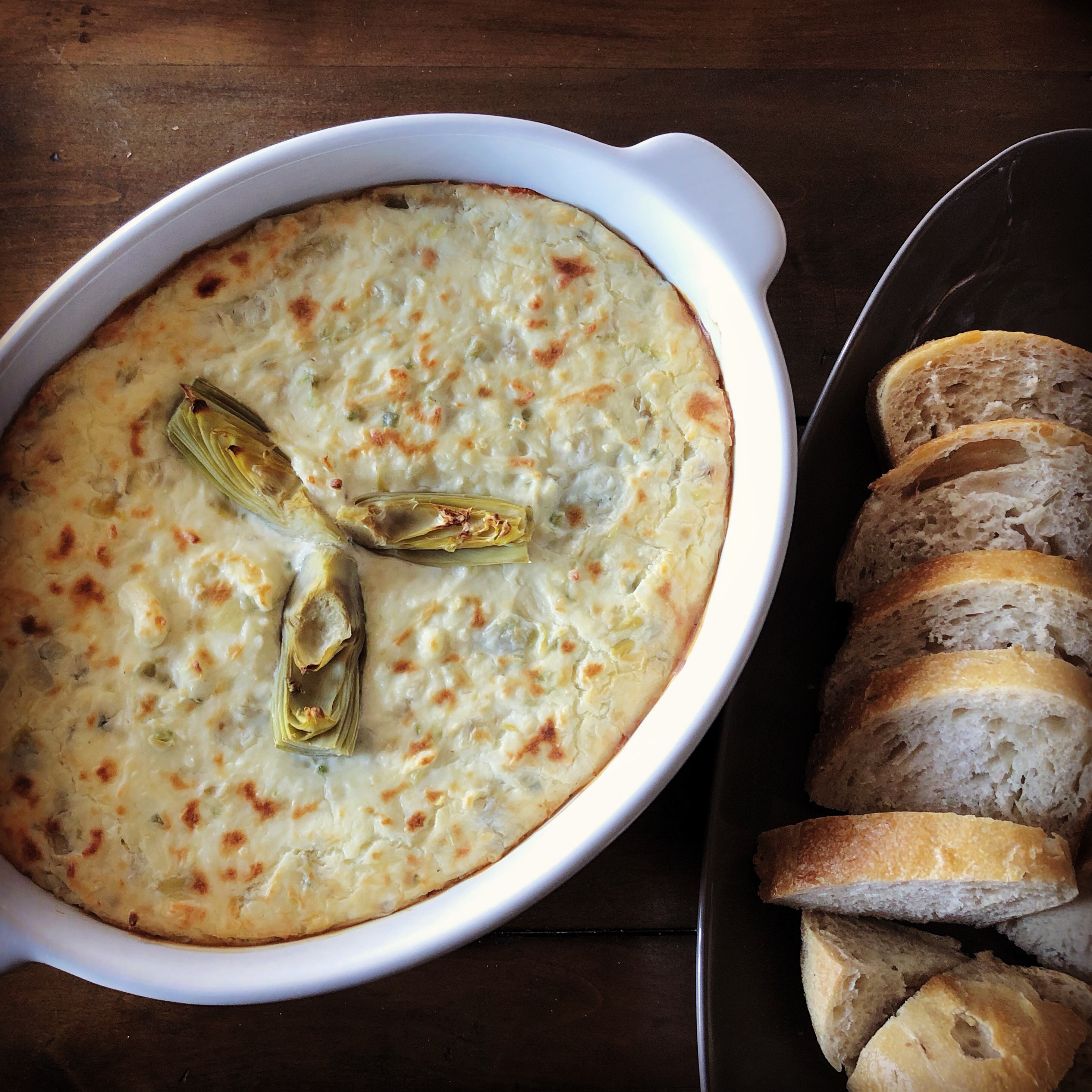 Happy Super Bowl Sunday! Just thought I would take a quick minute to share the dish I’m sharing with my friends today – artichoke dip. Serve it with warmed, sliced bread or hearty crackers. It’s my favorite on game day or any day, really!