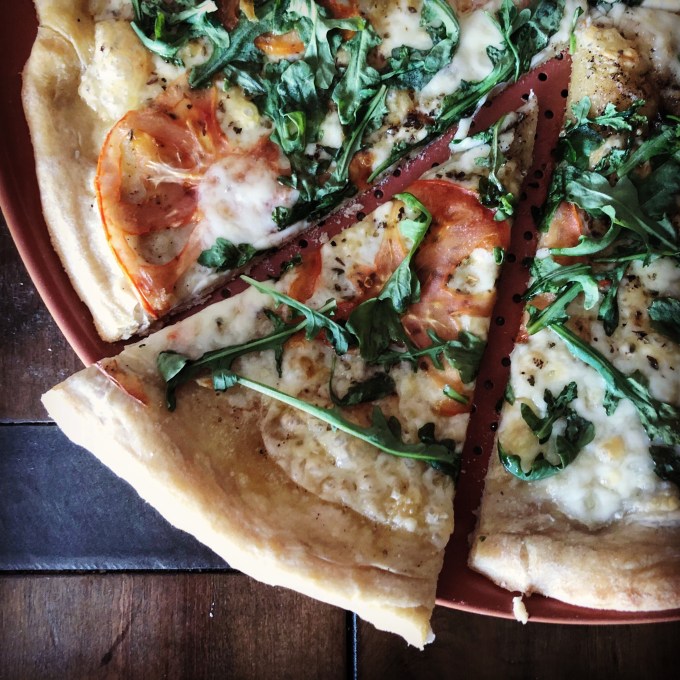 Sadly it did not wilt as the recipe I was following said it would (even though we waited eight minutes and the pizza got a little cold by the time we dug in), but the arugula gives this margherita-style pizza a bit of an extra kick. Highly, highly recommend trying this pizza!