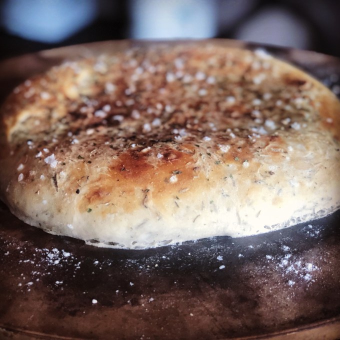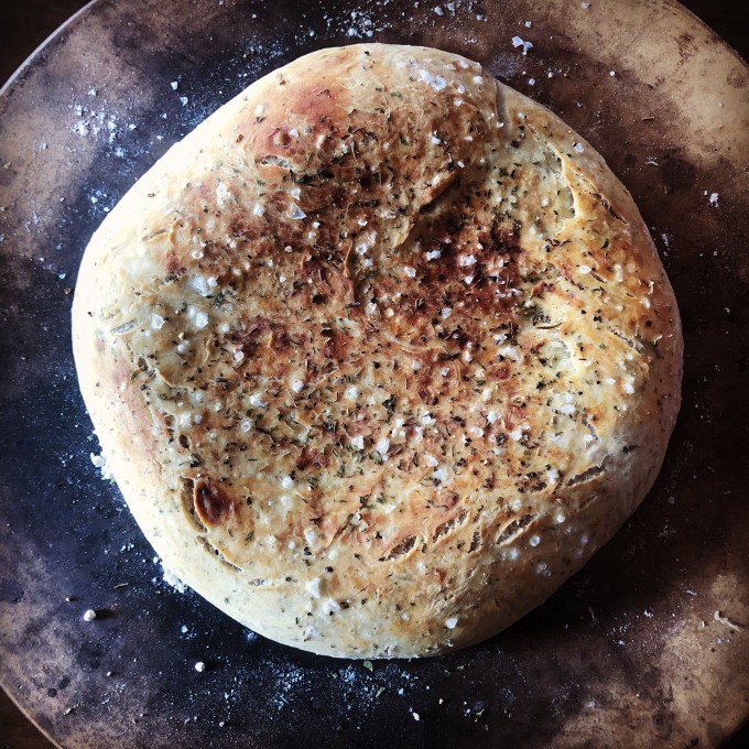 I sprinkled my bread with dried thyme instead of dried rosemary because I used all the dried rosemary I had in the house for the dough.