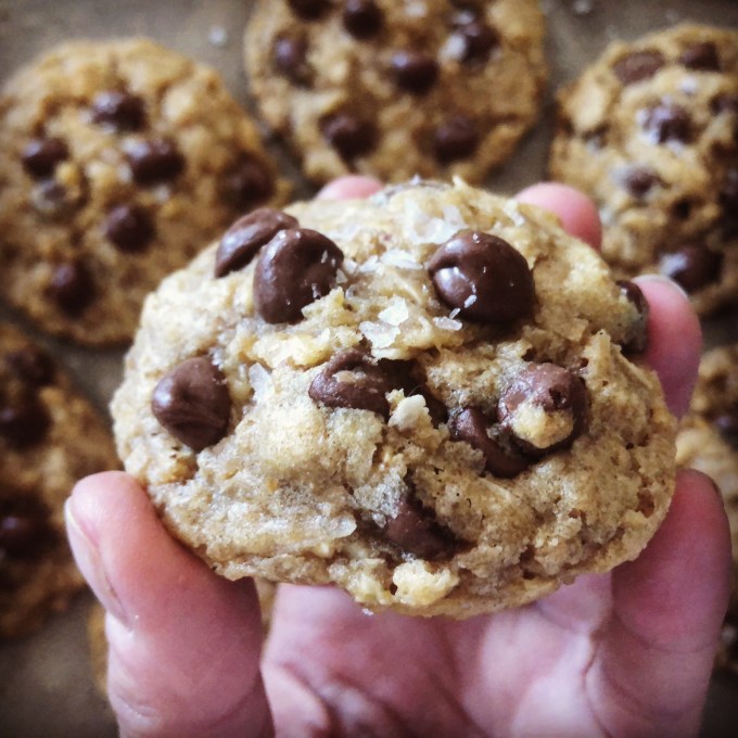 The cookies will get brown on the bottom but not on top. It’s very easy to over-bake these cookies; so be careful! I personally like my cookies slightly under-baked. If you do too, I would recommend rolling the dough into balls and baking for only 8 minutes. The bottoms will be light and the center will be soft, chewy and slightly gooey.