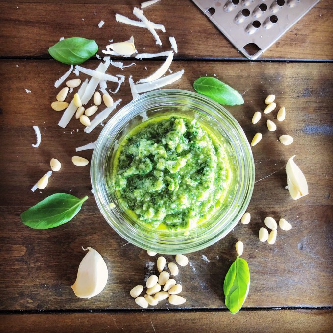 I have been wanting to make my own pesto forever – probably since the first time I ever tried pesto sauce. With dad’s trip winding down, I thought I should squeeze this recipe in before he leaves.