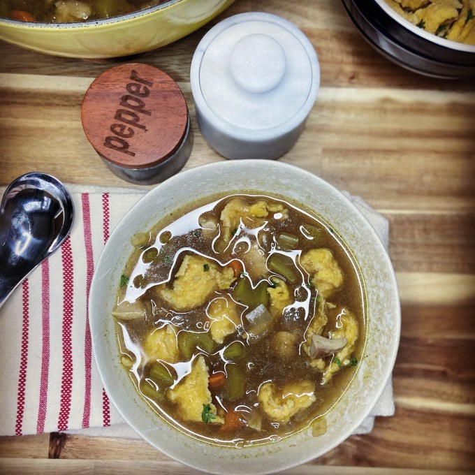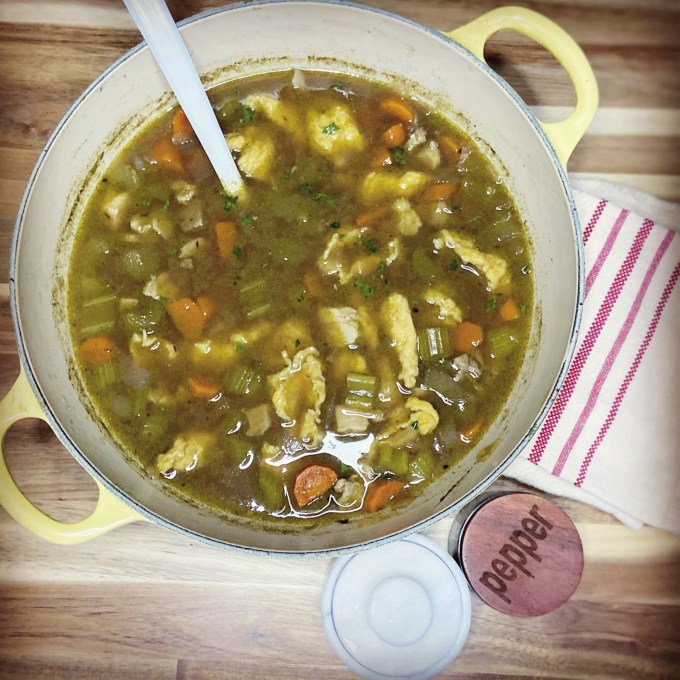 Believe it or not, up until today I didn’t have the need to make this soup. However, I caught some nasty bug or flu and have been sick since last Friday. Today I stayed home from work and rested. I just knew I would feel better if I had some of my mom’s chicken soup with homemade dumplings.