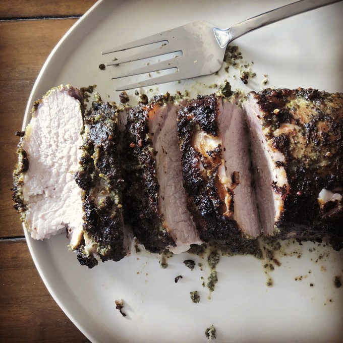 - Rub Garlic and Herb Rub into the scores and over all surfaces; most of the paste should be trapped in the scored skin and fat; refrigerate at least three hours or overnight.
