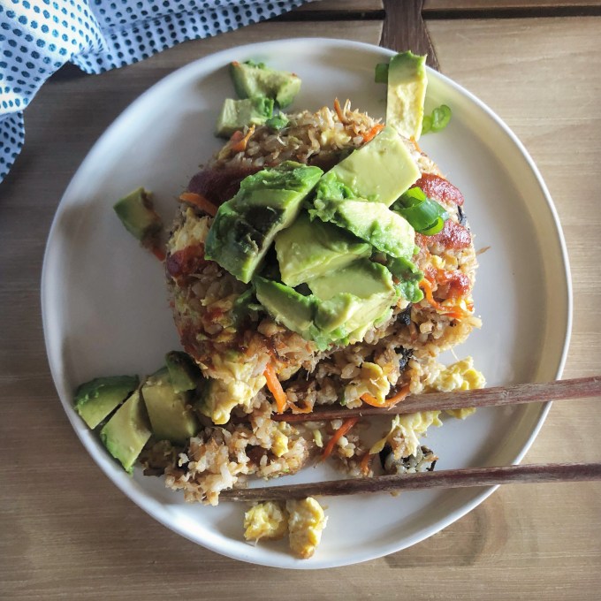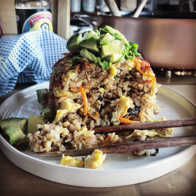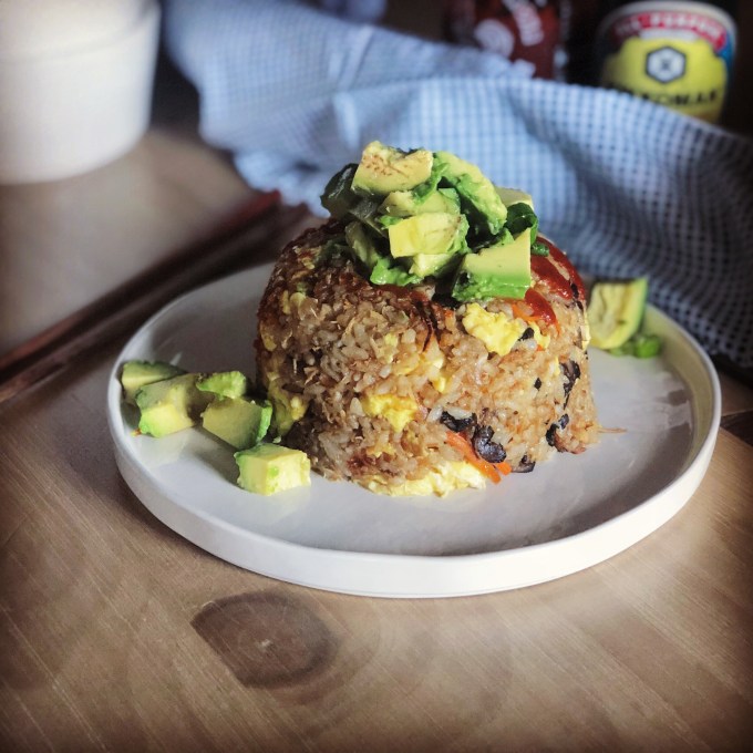 Given that I don’t like the traditional ingredients in fried rice, my fried rice recipes are always a little different – but especially this one, which has an optional secret ingredient. Even Sis commented that she liked my addition!