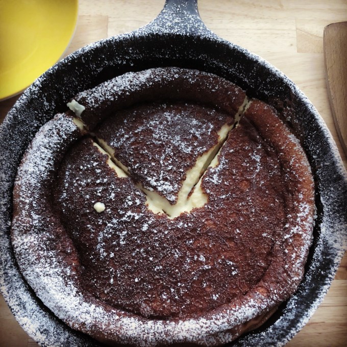 That said it’s about the quickest, fuss-free pancake you can make. Throw all the ingredients together in a blender or nutribullet while you preheat the oven and the cooking pan, add butter to the pan before pouring the mixture in and let the pancake puff up in the oven before your eyes.