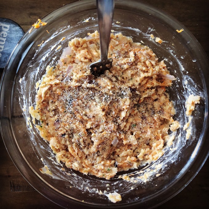 You can see why in 2018 I omitted the lemon. I wasn’t overly fond of this recipe the first time I made it. Since I was omitting the lemon, I decided to omit the step where I puréed the beans with lemon. Instead I opted to mash the beans. Doing so made for a thicker patty that held together better.