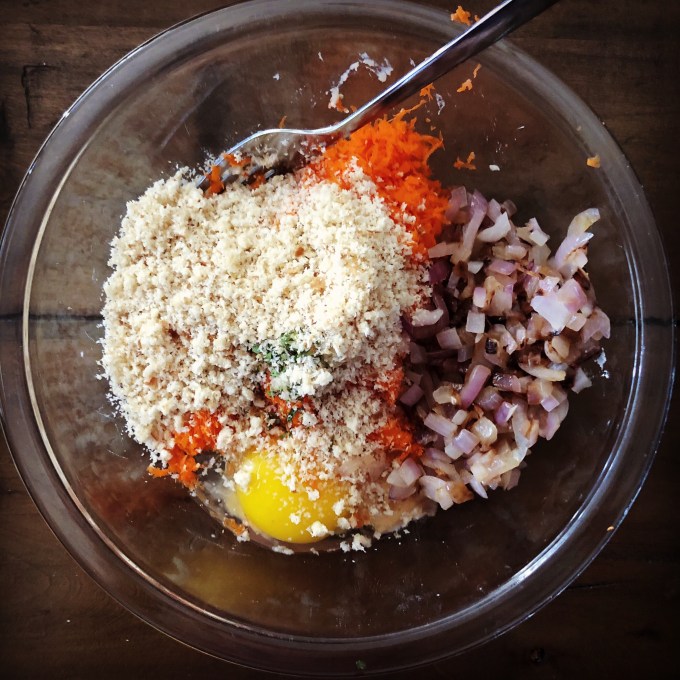 - Mash the beans. Transfer to a bowl and stir in the onion mixture, carrot, parsley, oregano, bread crumbs and the egg. Season to taste. Refrigerate 4 to 6 hours or overnight.