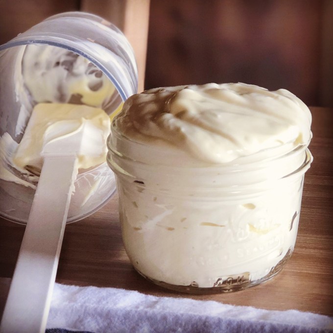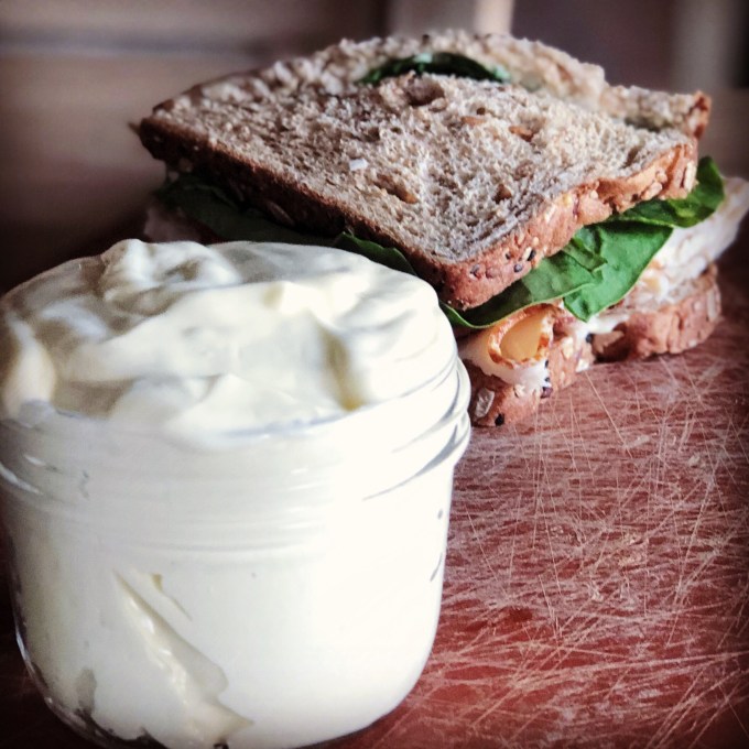I swear I already blogged about mayonnaise until I went through my archives and realized I’ve only blogged about chipotle mayonnaise (yum!). A recipe I’m about to make includes mayo and I recently tossed the outdated jar of mayo I had in the fridge. Instead of buying mayo at Trader Joe’s this morning (for a whopping $2.99 for a huge jar I’ll never be able to eat my way through), I opted to make my own. I was certain my grandma had recently sent me a recipe for mayo. I was right.