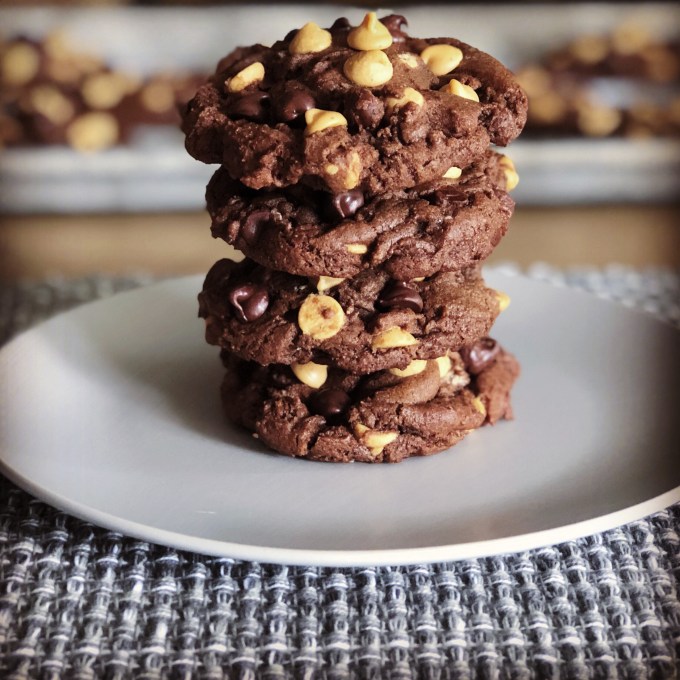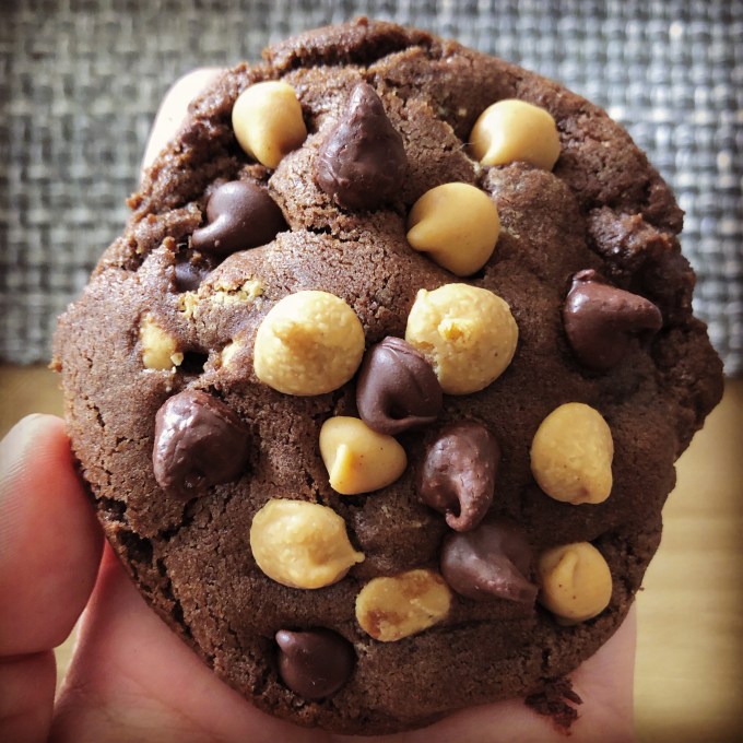 Here the combination comes together in a cookie made of browned butter that has been coagulated and chilled overnight before cooking. For extra special looking cookies, dot some additional peanut butter chips and chocolate chips on top of the cookies immediately after removing from the oven. (You can do this before placing in the oven but the peanut butter chips won’t look as nice having slightly melted in the oven during baking.)