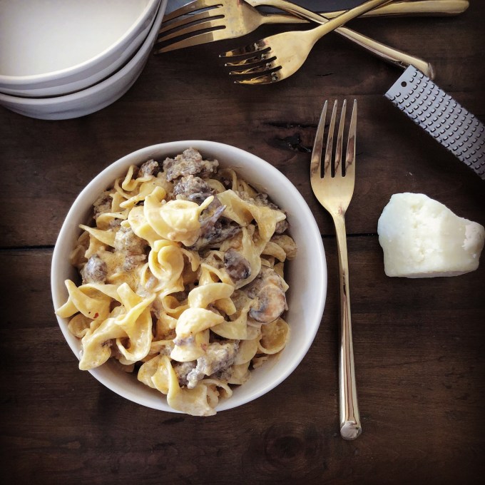 I first made this dish in 2011. The recipe is based on the Beef Stroganoff recipe found in the cookbook “Joy of Cooking” by Irma S. Rombauer and Marion Rombauer Becker, which I had been wanting to try forever. Since you can make stroganoff using any type of meat, I figured Italian sausage would make an excellent stroganoff. I was right.