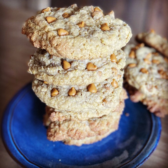 After the success I felt I had dabbling with cornmeal as an ingredient in cookies when I made the Blue Cornmeal Peanut Butter Cookies, I thought I would try my hand at another cornmeal cookie and see how it turned out. I had a rough idea of what I wanted to do with this cookie but after adding some canned pumpkin (my original idea which seemed brilliant?) and discovering it was a bad idea, I began throwing ingredients in willy-nilly to try to get the dough to taste good again.