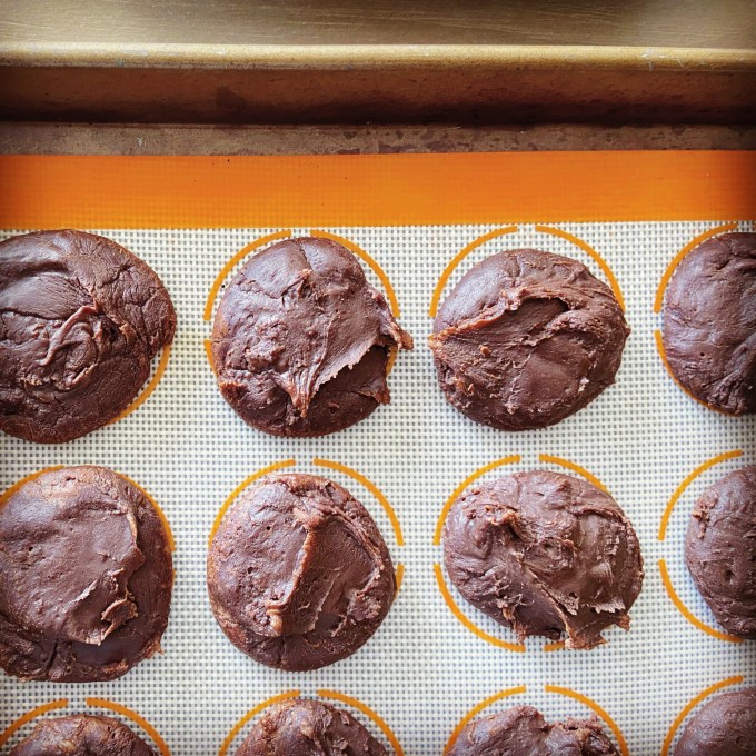 - Drop by heaping tablespoonfuls onto cookie sheets, 24 cookies to a sheet. Bake for 7 minutes. Do not over-bake. Remove from oven and cool slightly on cookie sheet before moving to cooling rack.