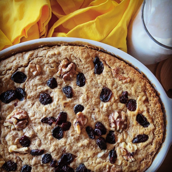 If you’d like to add some moisture to your bowl of warm baked oatmeal, you can add a quarter-cup of milk or half and half to turn this baked oatmeal into a more traditional style creamy stove-top (or microwave) oatmeal. I like mine with just a touch of milk. It’s like eating an baked oatmeal ‘bread’ pudding.