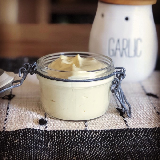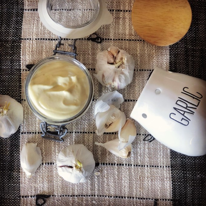 It took me approximately 28 years to realize that I like garlic. Not long after realizing I like garlic, I made the decision that garlic (along with cheese and butter) is one of those super foods that you can never have too much of in any dish. (For the most part.) You truly do have to be a garlic lover to enjoy this mayonnaise.
