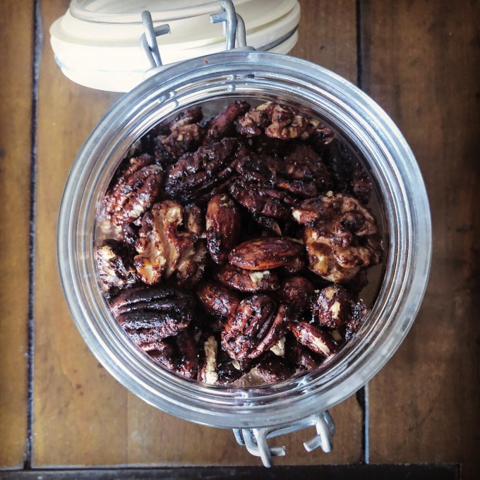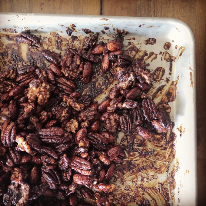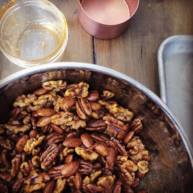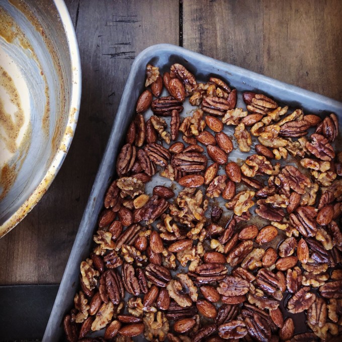 Though there’s salt in the recipe, I recommend salting these nuts before you bake them, after, or both! It brings out the flavor.