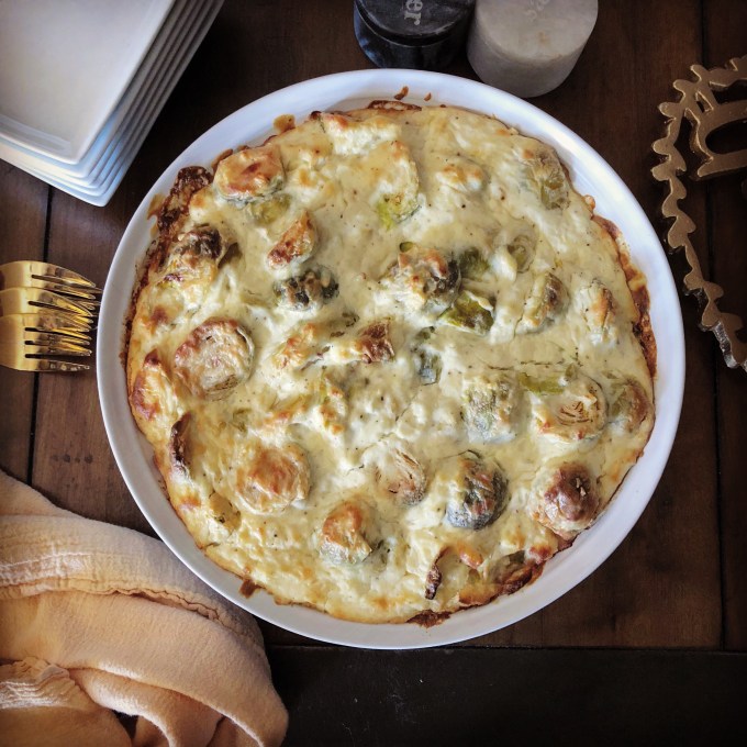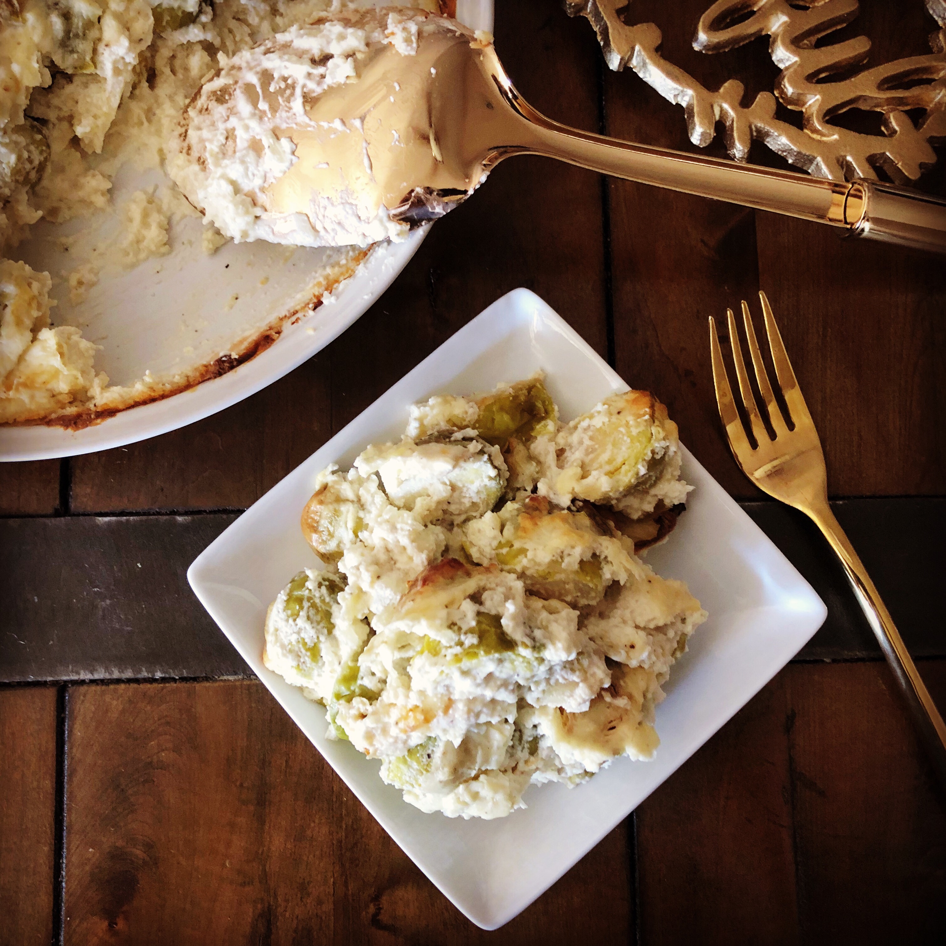 The end product was a bit dry, perhaps because of the sour cream. I thought the cream cheese mixture was a bit too thick when I was mixing it with the Brussels sprouts before baking. I think this dish could be phenomenal if you mixed a bit of heavy cream into the cream cheese mixture. Other than the dry texture of the cream cheese mixture after baking, the dish had a great taste.