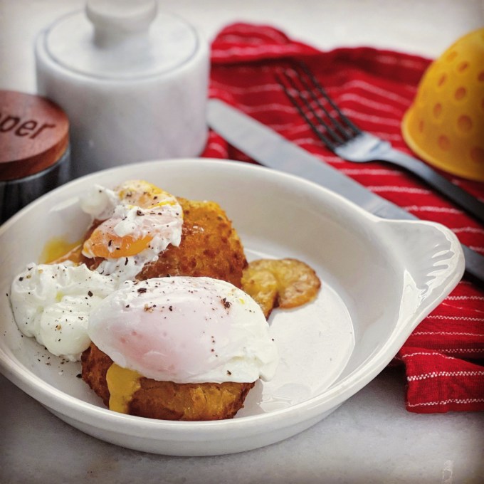 Due to the awe and delight I experienced when I lifted the cover and saw a real poached egg made by none other than moi (and, in part, to my camera freezing as I was trying to take a picture); my egg remained in the water for another three or four minutes after the recommended poaching time. I would recommend playing around with the cook time until you find an amount that yields a satisfactory yolk.
