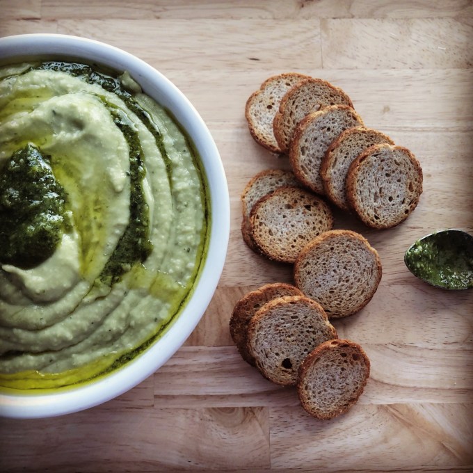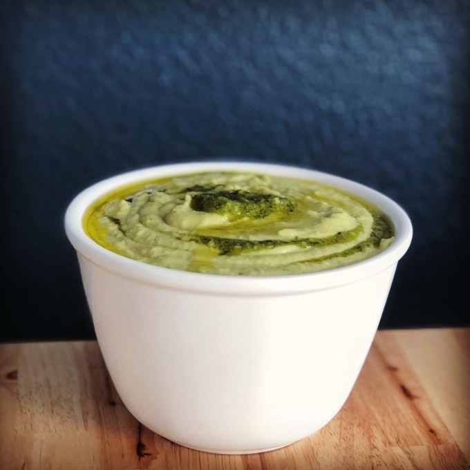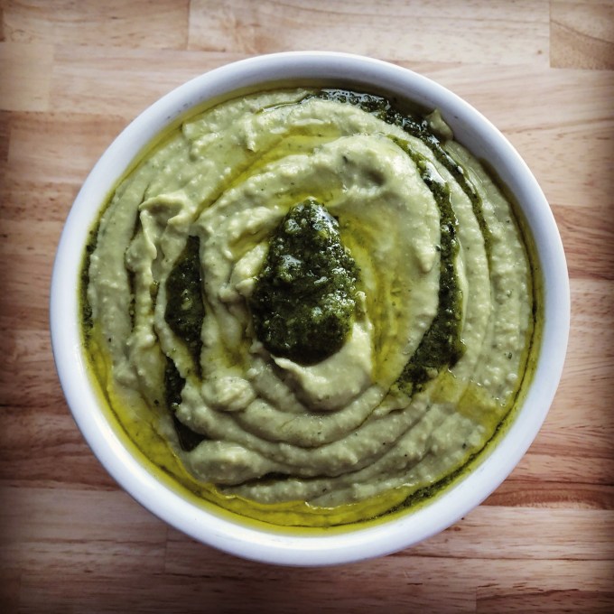- Drizzle with additional pesto before serving (or layer additional pesto in between spoonfuls of hummus in your serving bowl). Serve with crackers, pita chips, tortilla chips or veggies.