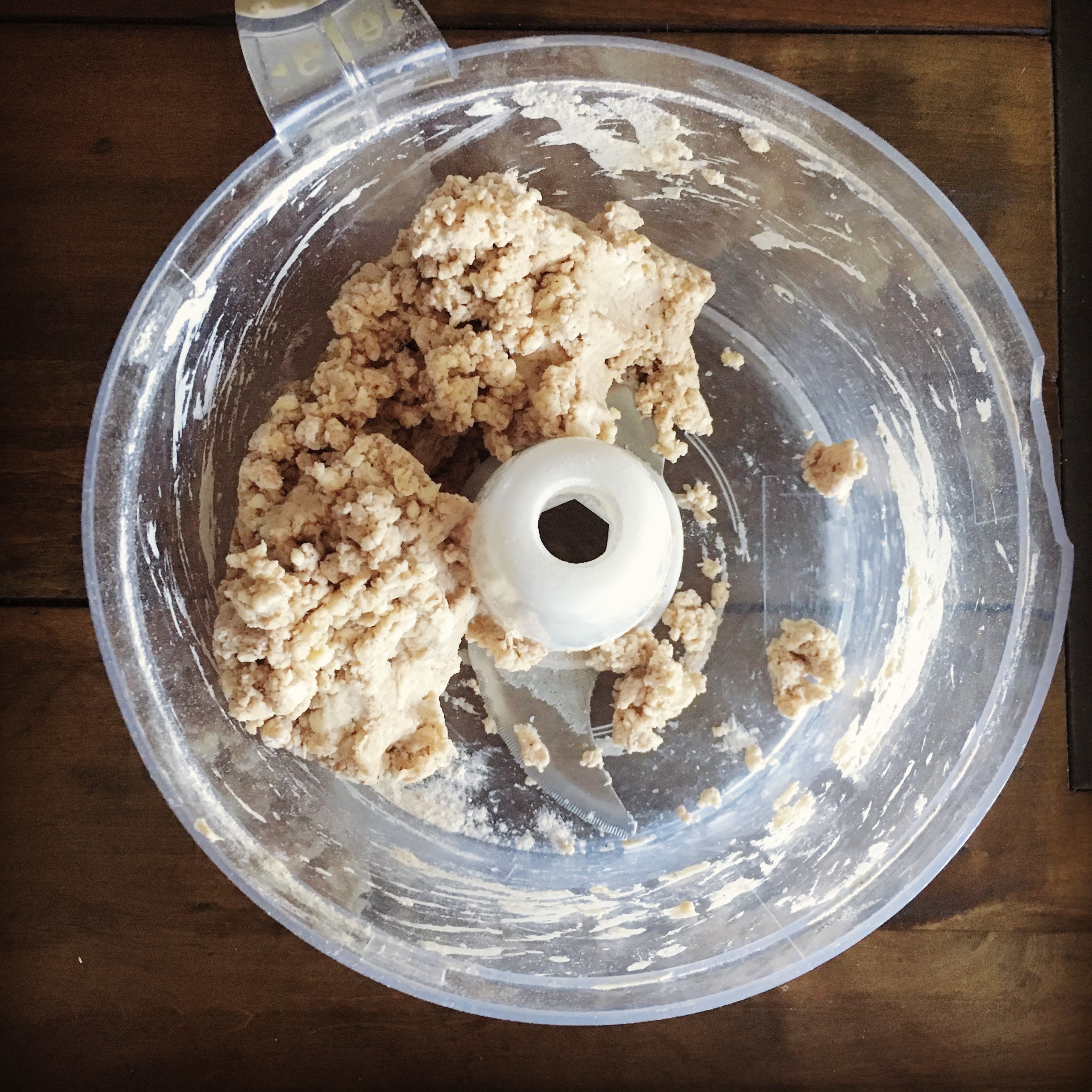 - Add a couple of tablespoons of ice-cold water to the food processor bowl and pulse a couple of times. (To get the water really cold I put it in a cup in the freezer when I’m just starting to prepare the dough.) Then add more water, slowly, about a tablespoon at a time, pulsing after each addition, until the mixture just barely begins to come together. If you pinch some of the crumbly dough and it holds together, it’s ready. If not, add a little more water and pulse again. Note: Too much water will make your crust tough.