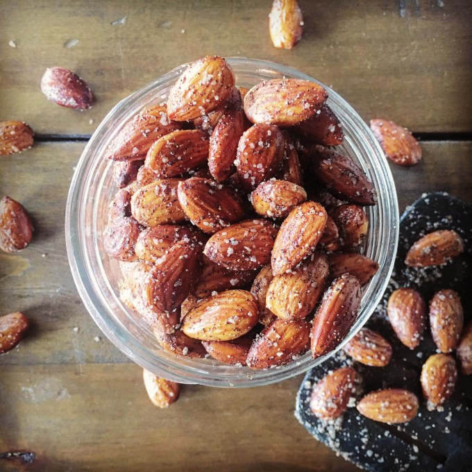 When my dad my left my house to fly back home, he left me with a large package of raw almonds from Trader Joe’s. I like nuts of any kind and I especially like them when they’re roasted, salted or spiced in some way or another.