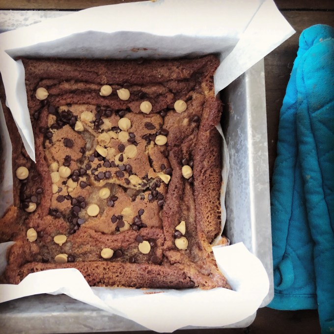 I found a recipe for ‘chewy’ peanut butter brownies in the Penzeys Spices catalog. The last time I attempted peanut butter brownies, they were a total flop because I went rogue. I went a bit rogue again today when I crossed the Penzeys Spices catalog recipe with a recipe I’ve used to make Brown Butter Brownies (minus the cocoa powder, of course). Luckily today’s rogue attempt at peanut butter brownies was a success.