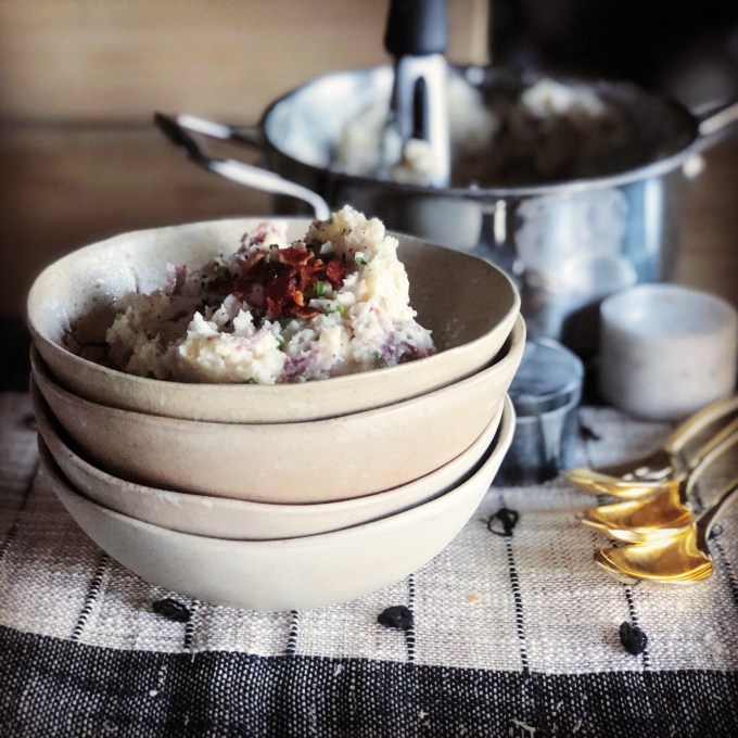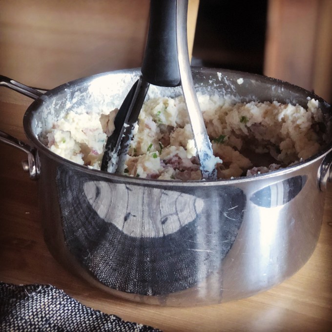 This recipe for mashed potatoes seemed like the perfect accompaniment for the Salisbury Steak I was making for dinner. However, with their loaded baked potato taste, they stand alone. No meat or gravy required.