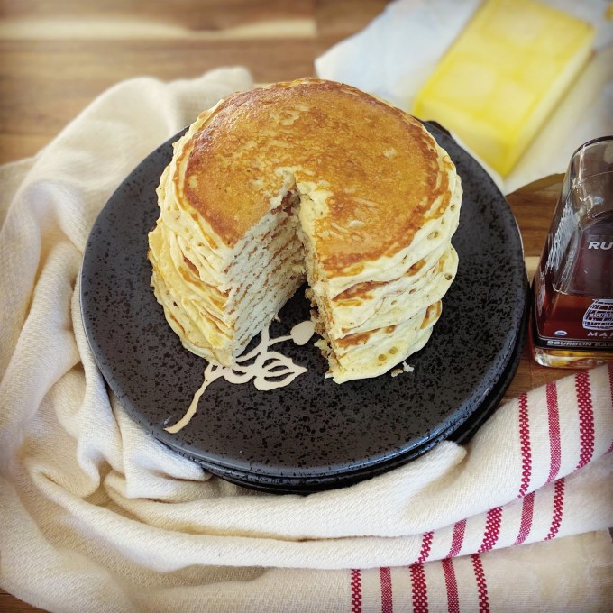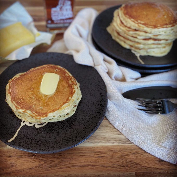 I browsed the internet and found a few recipes for Brown Butter Pancakes and then kind of went off and did my own thing. I added vanilla extract to the batter, which I wouldn’t do again. I’d rather not have the brown butter taste disguised by a more powerful flavor.