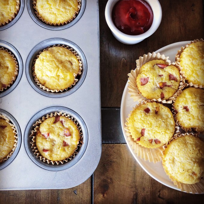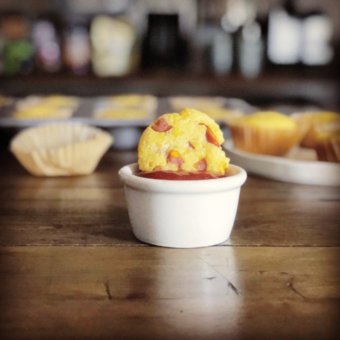 So here are my thoughts: there needed to be more hotdog, less muffin, in these muffins. I wanted them to be more corn-doggy. A corn dog has more hot dog than it does the outer corn layer. Also, I really wished I had some ketchup to go with these. But I’m not a huge fan of ketchup – only eat it with chicken nuggets, fish sticks and corn dogs (none of which I eat regularly) – so I don’t really keep ketchup on hand.