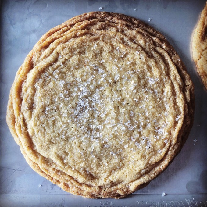 I am obsessed with giant cookies recently, especially giant cookies made of butter that cinch up around the edges as they spread out and bake. They end up crispy on the edges and chewy in the center.