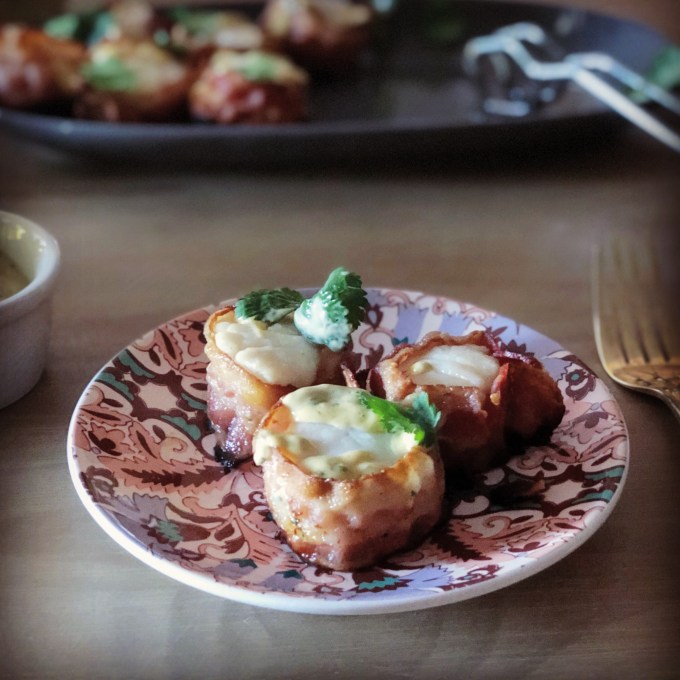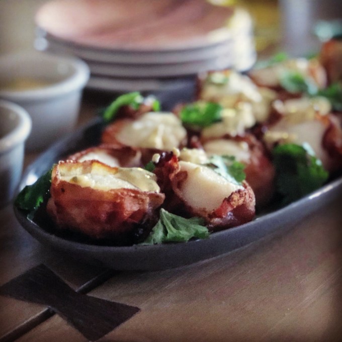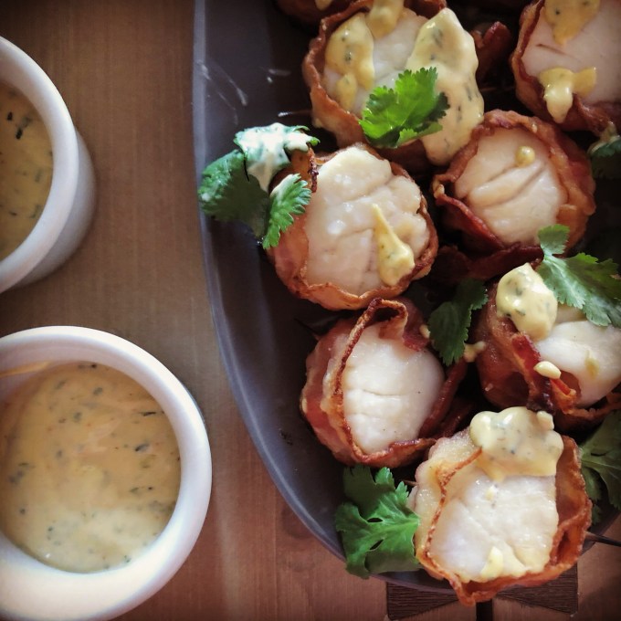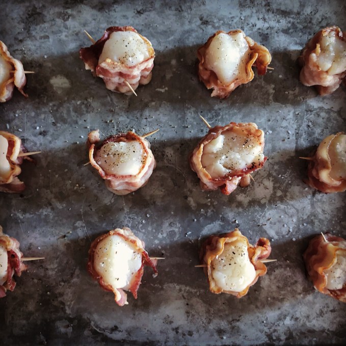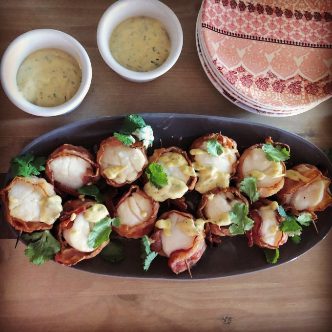 With five good large scallops to use, I knew I needed to find a special recipe. Immediately I thought of bacon-wrapped scallops. In part because I had bacon in the fridge, but also because doesn’t bacon make everything better? I found this recipe heavily peppered all over the internet.