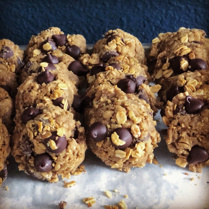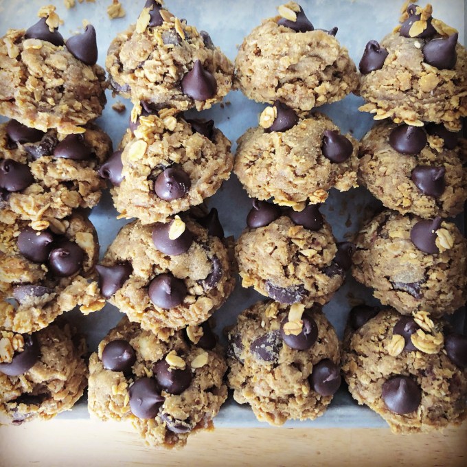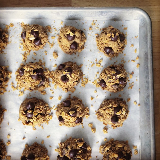 The best way to fatten up granola seems to me to … turn it into a cookie. Right? Yes. I’m not the first person to have this thought. Google granola + cookies or granola + chocolate + chip + cookies (as I did), and you won’t be at a want for recipes. The recipe below is adapted from the BHG (Better Homes and Gardens, duh) recipe.