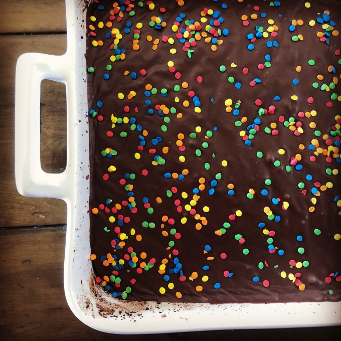 My grandma sent me a recipe for vegan cake a few weeks ago. I clipped it out for its simplicity and because, I’m pretty sure, I’ve never ventured down the vegan baked goods road, and I thought I would give it a whirl and put the taste to the test.