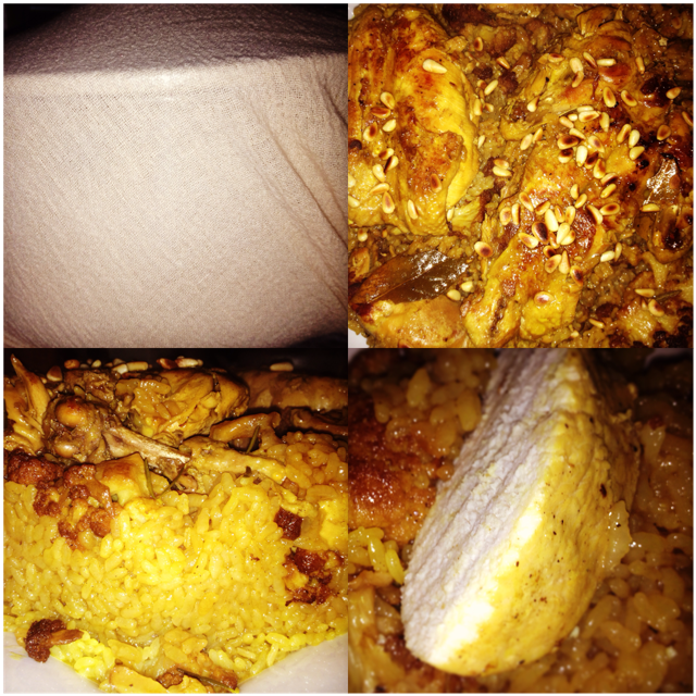 1. You have no idea how happy my mother and I to see that you have made maglobeh, this is an authentic Jordanian dish that all Jordanian’s cook at least once a week! as for the cinnamon whenever we cook maglobeh with other vegetables we never add it but it sort of play a mysterious role with the cauliflower, maybe because the when the cauliflower fries it melts and becomes so sweet. As for the bharat they are the 7 arabic spices, we make the mix at home, you can try it at home, grind them and keep in the freezer Allspice, Black peppercorns, Cardamom seeds, Cinnamon, Cloves Ginger and Nutmeg. And the part where you covered your pot!! amazing you are officially a Jordanian women 🙂