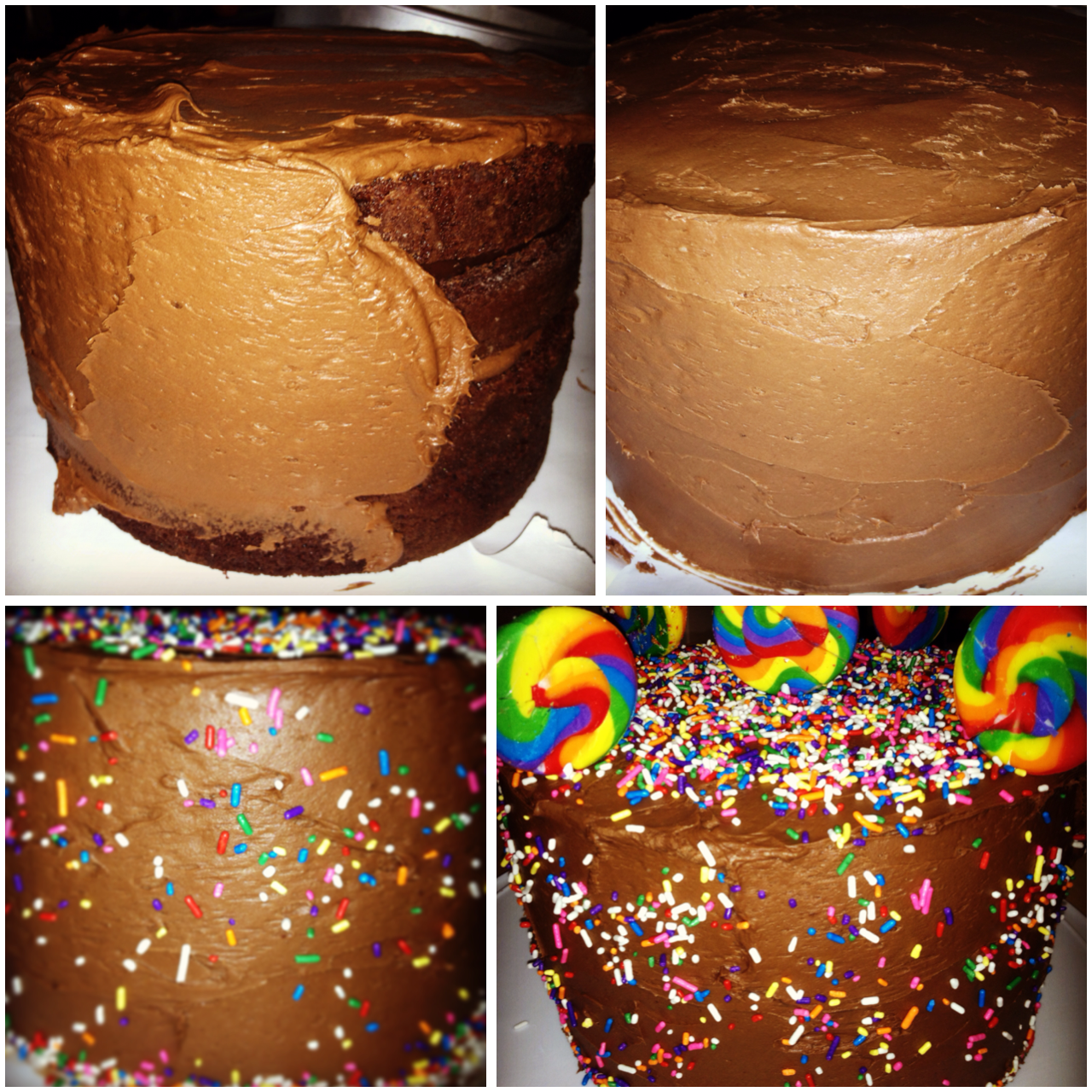 I like to make this cake at least the night before. Lots of times I will let my cake sit in the fridge for a day or two. I believe this helps the frosting sink into the cake layers a bit and allows the cake to settle.