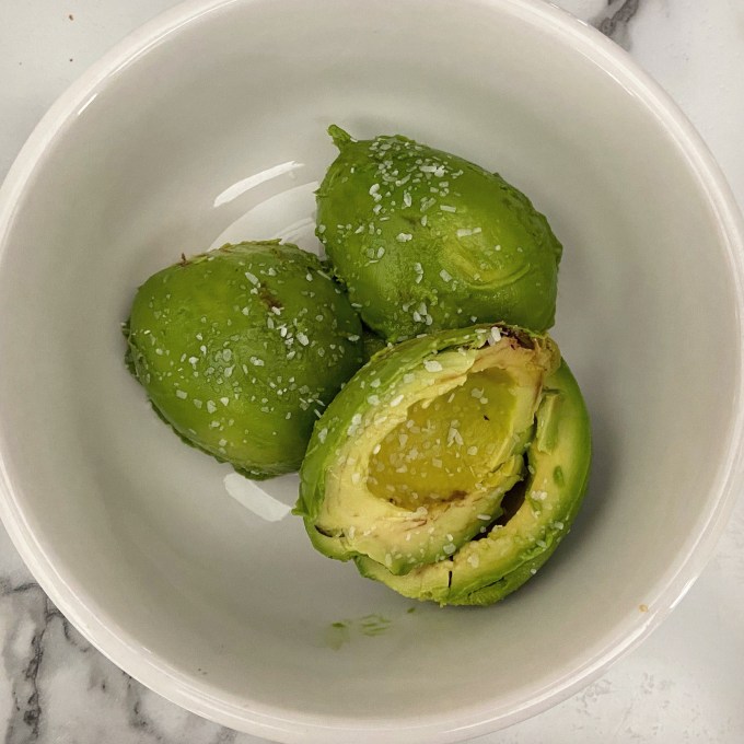 • 4 medium Haas avocados, peeled, pits removed (reserve a pit or two)