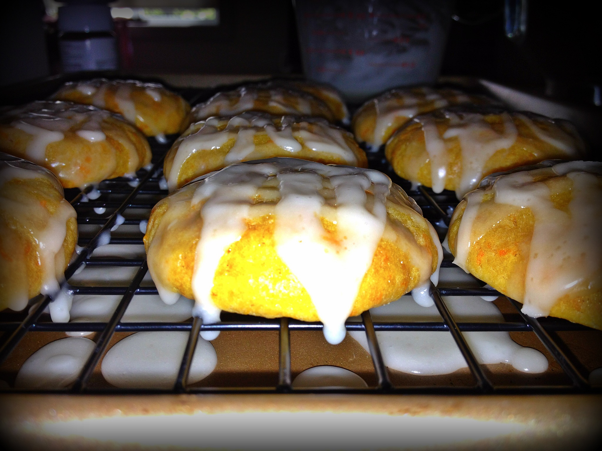 Inspired by the delicious Brown Butter Carrot Cake I made recently, I decided to give carrot cookies a whirl. Recently my grandma sent me a recipe for carrot cookies which she clipped from a Penzeys Spices catalog. I was intrigued by the recipe but wanted to make the cookies my own. So I half-ass crossed the Penzeys’ recipe with Browned Butter Snicker Doodle Cookies (meaning I didn’t actually look up the Snicker Doodle recipe; but went off memory), which resulted in a puffy and cake-like cookie.