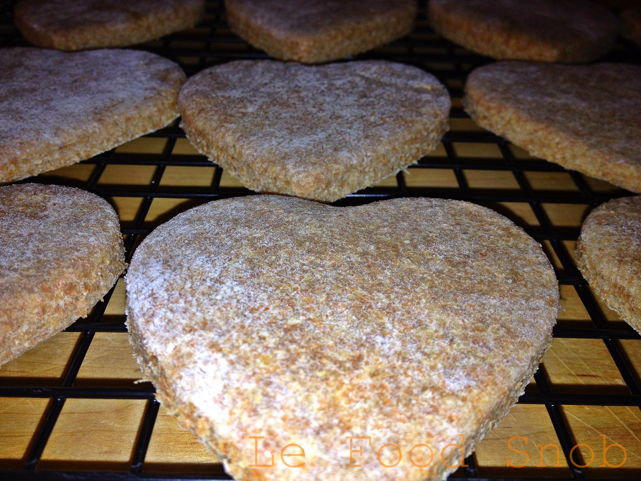 Somewhere in the confines of my kitchen I have bone-shaped cookie cutters. Figures the time I go to use it, I can’t find it. So instead I chose heart-shaped not only because I made these biscuits with love but also because I love my little guy.